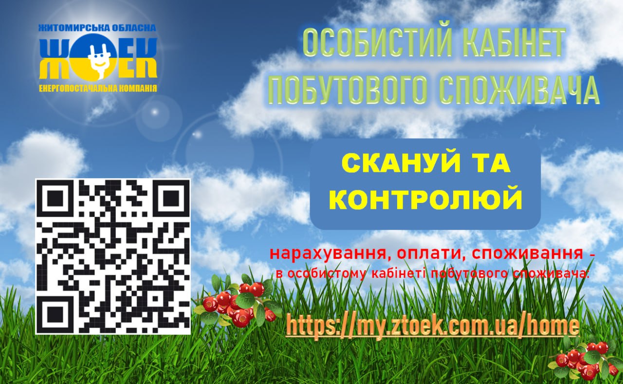 Якщо ви ще не встигли оцінити переваги нашого особистого кабінету – витратьте лічені хвилини на реєстрацію: для початку, переходимо у «Кабінет побутового споживача» за посиланням (https://my.ztoek.com.ua/home/) або скануємо QR – код і обираємо «Зареєструватися».