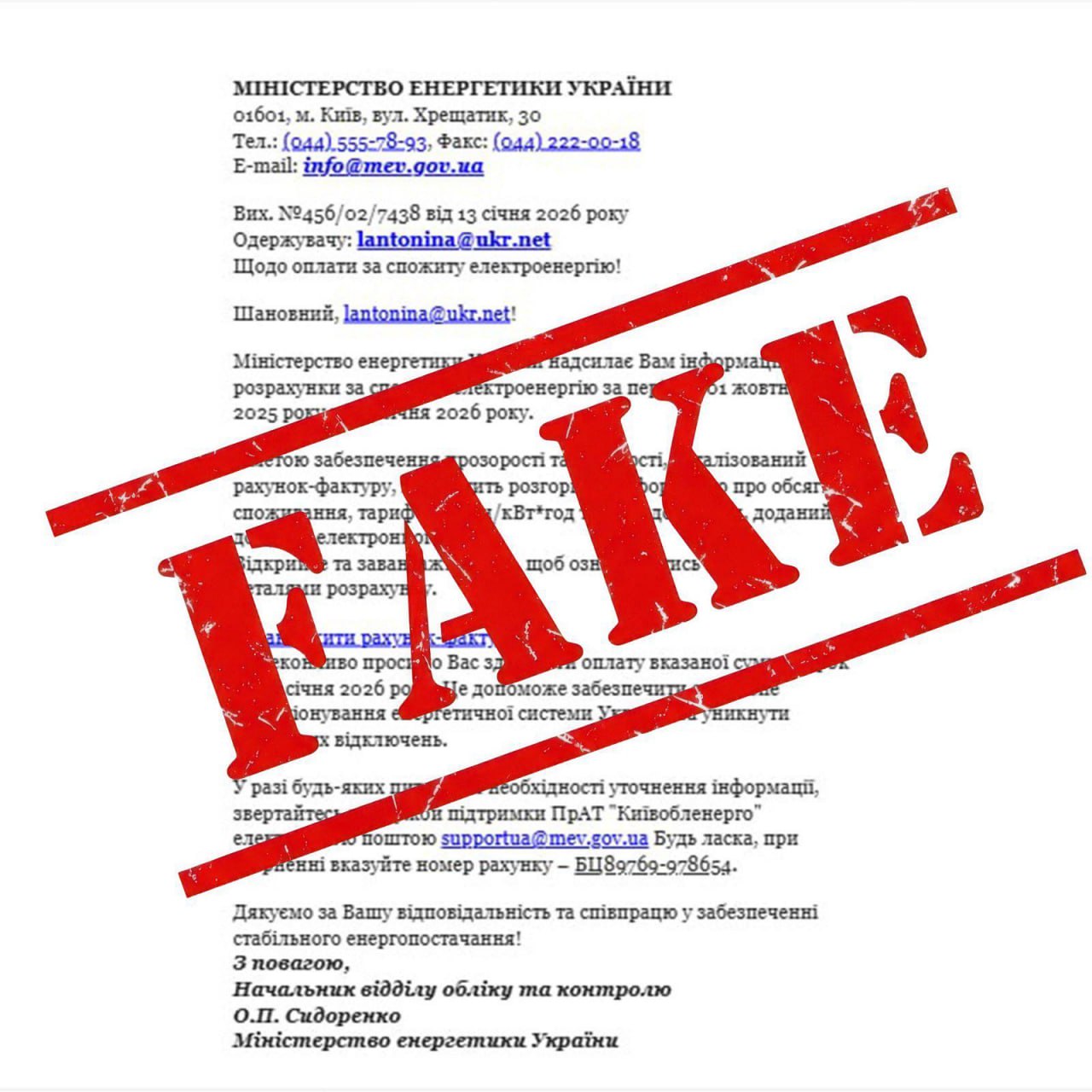 Закликаємо не відкривати вкладення, не переходити за посиланнями та не здійснювати жодних оплат за такими листами.