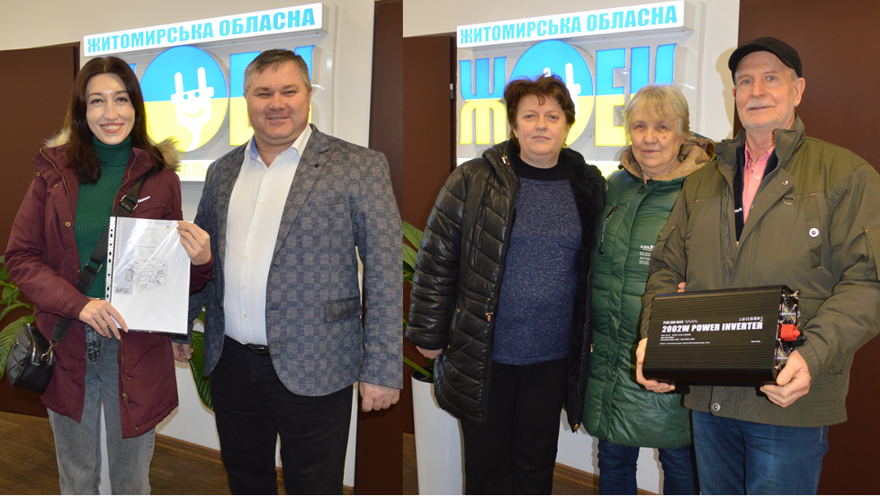 Головний приз – генератор бензиновий Konner&Sohnen 5.5kW отримала Олена Пінчук з Черняхова, а не менш корисний для свого помешкання подарунок – джерело безперебійного живлення (комплект GYS інвертор PSW 2002W 12V і акумулятор Ective 12V 145Ah) – дістався родині Русакових з Іршанська.